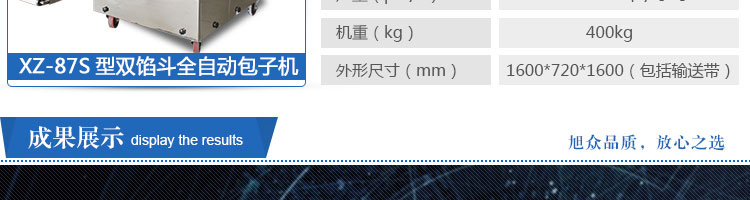 XZ-87S型雙餡斗全自動包子機,可生產(chǎn)各種肉包、肉菜包、菜包、小籠包、湯包、水晶包、圓饅頭、奶黃包、豆沙包、叉燒包、南瓜餅等幾十種包餡制品。適用于賓館、飯店、學校、機關(guān)企業(yè)食堂、饅頭或包子加工廠、早餐工程店及速凍食品廠等單位??蓾M足不同客戶群體。免費提供工藝技術(shù)。免費上門培訓(xùn)指導(dǎo)安裝。