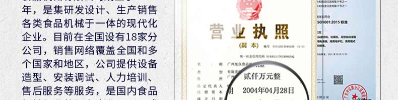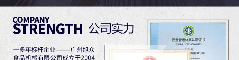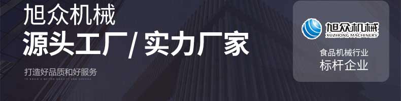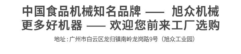 廣州旭眾食品機(jī)械有限公司是一家集科研開發(fā),生產(chǎn)設(shè)計(jì),營銷服務(wù)為一體的現(xiàn)代化生產(chǎn)企業(yè)?,F(xiàn)代化生產(chǎn)車間,精湛制造技術(shù),所產(chǎn)機(jī)械歷經(jīng)市場(chǎng)重重考驗(yàn),不斷贏得海內(nèi)外客戶的贊譽(yù)。