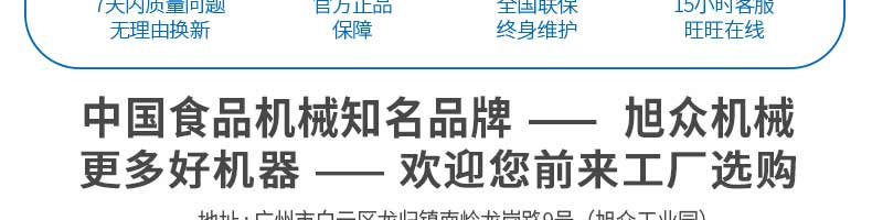 廣州旭眾食品機(jī)械有限公司是一家集科研開(kāi)發(fā),生產(chǎn)設(shè)計(jì),營(yíng)銷(xiāo)服務(wù)為一體的現(xiàn)代化生產(chǎn)企業(yè)?,F(xiàn)代化生產(chǎn)車(chē)間,精湛制造技術(shù),所產(chǎn)機(jī)械歷經(jīng)市場(chǎng)重重考驗(yàn),不斷贏得海內(nèi)外客戶的贊譽(yù)。