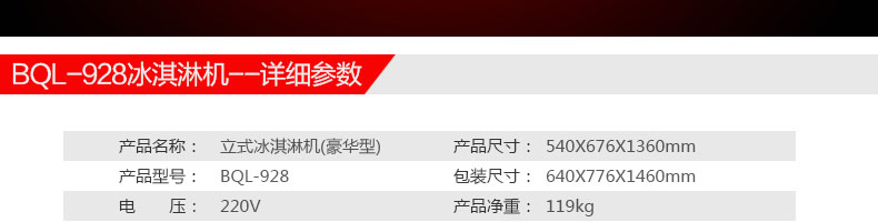 BQL-928立式冰淇淋機,1.選用國際牌壓縮機,輔以旭眾精湛工藝,大大縮短冰淇淋成型時間,高效節(jié)能;2.全新液晶智能觸控面板,簡單明了,多功能易操作;3.全新升級專業(yè)膨化泵,膨化率高,產(chǎn)量增加30%;4.一鍵清洗功能,省時方便;5.主要部件采用不銹鋼材質(zhì),時尚美觀,持久耐用;6.先進的機械攪拌系統(tǒng),機器運行穩(wěn)定可靠,低噪音,產(chǎn)品口感爽滑細嫩。
