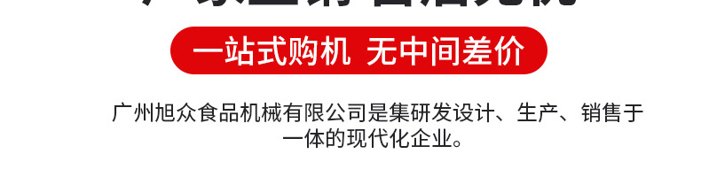 廣州旭眾食品機械有限公司是一家集科研開發(fā),生產(chǎn)設計,營銷服務為一體的現(xiàn)代化生產(chǎn)企業(yè)?,F(xiàn)代化生產(chǎn)車間,精湛制造技術,所產(chǎn)機械歷經(jīng)市場重重考驗,不斷贏得海內外客戶的贊譽。