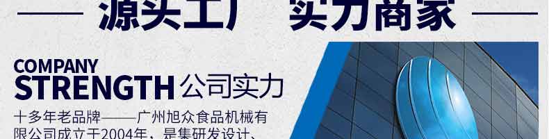 廣州旭眾食品機(jī)械有限公司是一家集科研開發(fā),生產(chǎn)設(shè)計(jì),營(yíng)銷服務(wù)為一體的現(xiàn)代化生產(chǎn)企業(yè)?,F(xiàn)代化生產(chǎn)車間,精湛制造技術(shù),所產(chǎn)機(jī)械歷經(jīng)市場(chǎng)重重考驗(yàn),不斷贏得海內(nèi)外客戶的贊譽(yù)。