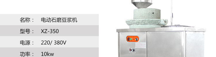 XZ-350型電動石磨豆?jié){機,適用于制作豆?jié){;豆?jié){還含有鐵、鈣等礦物質(zhì),尤其是其所含的鈣,雖不及豆腐,但比其他任何乳類都高,非常適合于各種人群,包括老人、成年人和青少年等等。