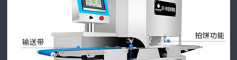 XZ-150型搟薄機(jī),為一種對(duì)面團(tuán)可進(jìn)行氣動(dòng)拍餅或仿手工搟薄的設(shè)備,可根據(jù)用戶需要對(duì)面團(tuán)的直徑、厚度進(jìn)行調(diào)整并將面團(tuán)按照設(shè)定的規(guī)格進(jìn)行搓圓摔搟薄。