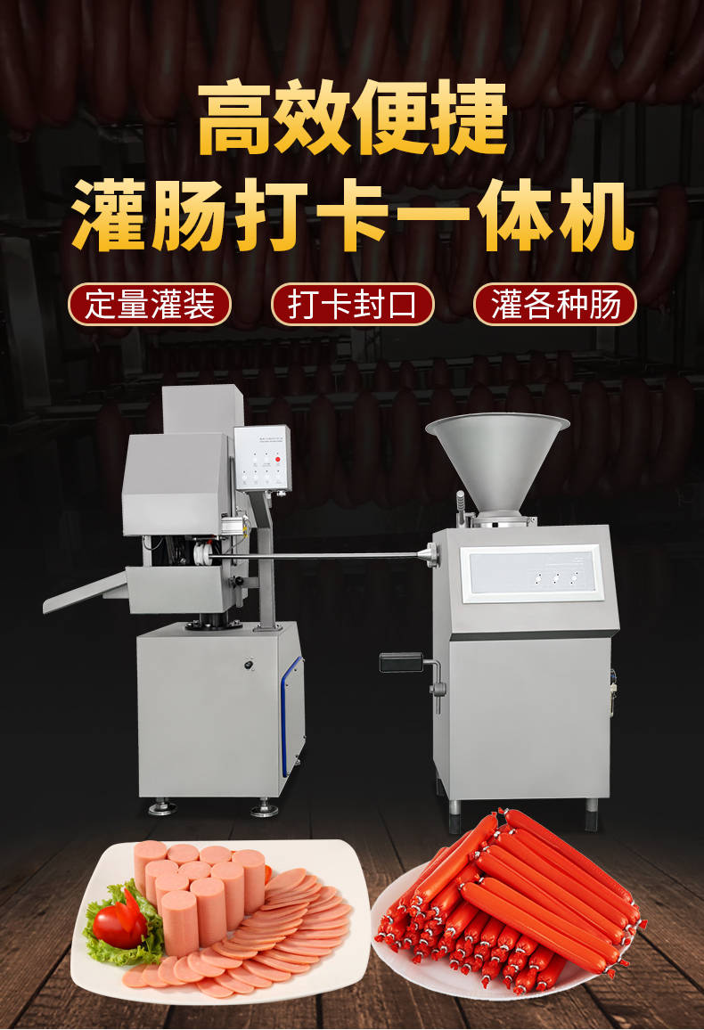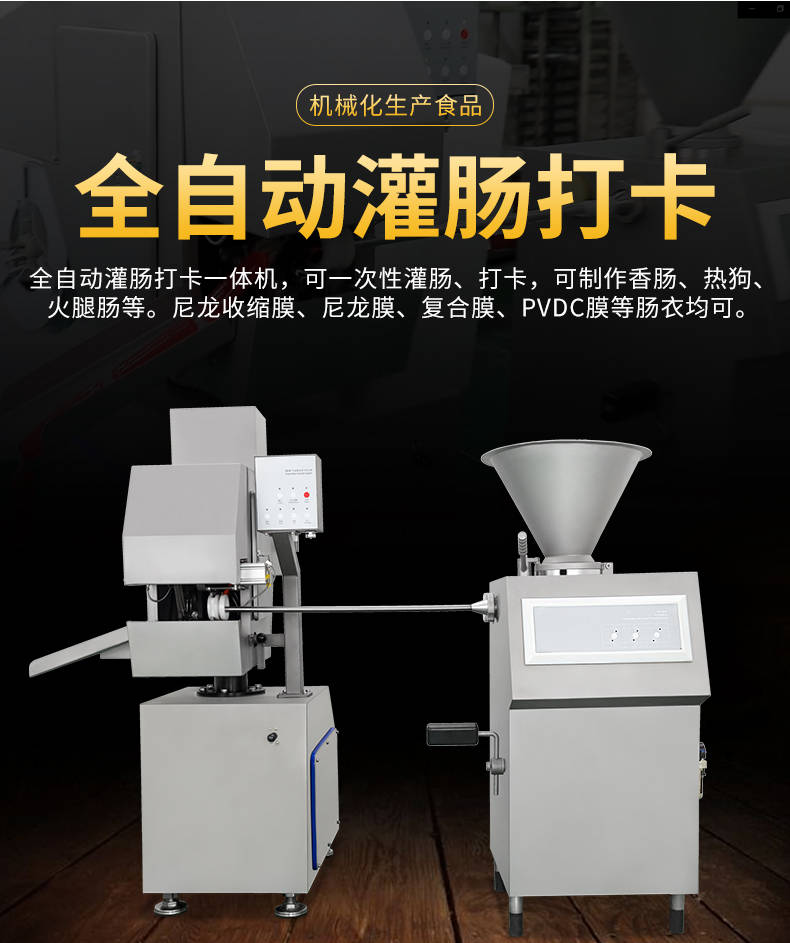 XZ-I型自動定量灌腸機,使用優(yōu)質(zhì)不銹鋼制造,符合食品機械的要求,只需1人操作,特別適合中小型肉食加工廠使用,以各種畜禽類肉糜為原料的香腸、火腿腸、熱狗等天然腸衣、蛋白腸衣、煙熏腸衣等制品,可以灌制定重量單腸,也可連續(xù)灌制長腸。