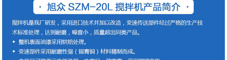 SZM-20型四功能攪拌機,可用于攪拌奶油、蛋糕液、餡料及和制面團等操作。打蛋攪拌機等作攪拌食料、揉和面團之用,是生產(chǎn)優(yōu)質(zhì)糕點的理想設(shè)備,適用于酒店、飯店、學(xué)校部門、面包屋以及食品廠家。