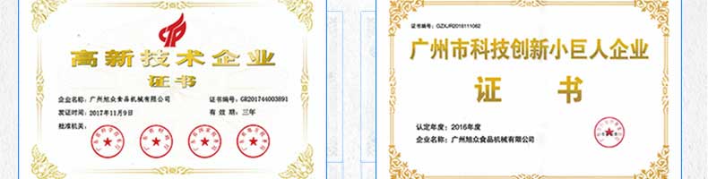 廣州旭眾食品機(jī)械有限公司是一家集科研開發(fā),生產(chǎn)設(shè)計,營銷服務(wù)為一體的現(xiàn)代化生產(chǎn)企業(yè)。現(xiàn)代化生產(chǎn)車間,精湛制造技術(shù),所產(chǎn)機(jī)械歷經(jīng)市場重重考驗,不斷贏得海內(nèi)外客戶的贊譽(yù)。