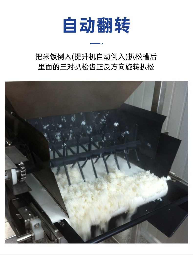 智能米飯扒松機-翻轉(zhuǎn)扒松機,主要結(jié)構(gòu):由不銹鋼機架、翻鍋機構(gòu)、扒松機構(gòu)輸送機構(gòu)和電氣自動系統(tǒng)等組成。適用對象:主要用于中央廚房、團膳、企事業(yè)單位食堂等