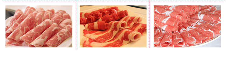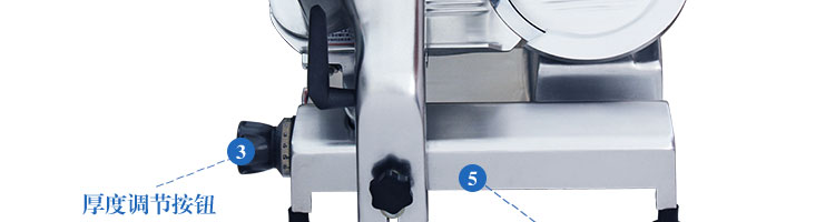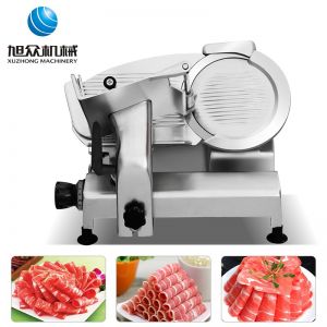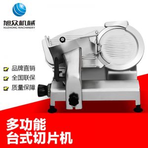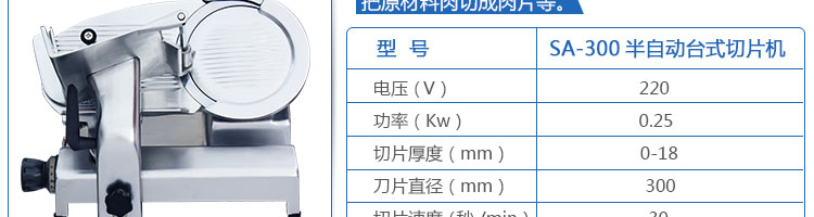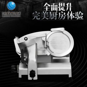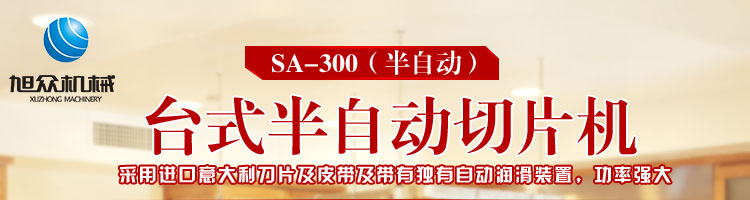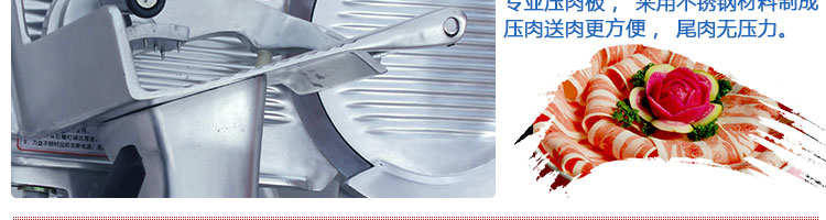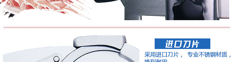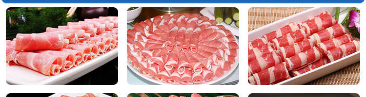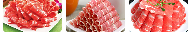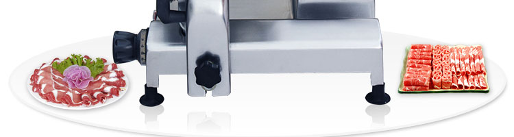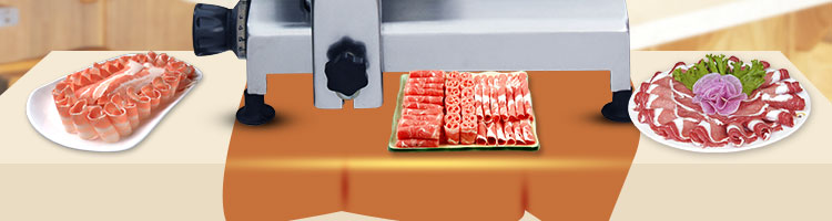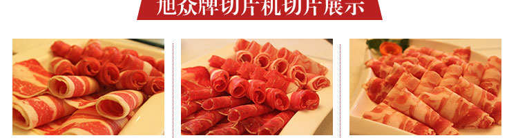 臺式半自動切片機,適合切無骨肉類和其他類似榨菜帶有彈性的食物,把原材料肉切成肉片,并可自動成卷狀。可切牛肉片、羊肉片等