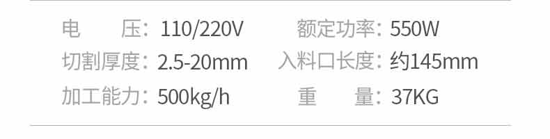 XZ-QX320-切肉機,小型切肉機是一款主要對肉類進行加工的設(shè)備,配置單層刀具一次性切肉片,二次切肉絲,再切成料。刀具采取外置懸臂式設(shè)計,拆洗方便,衛(wèi)生更有保障;配置多種刀具,可加工不同厚度的肉片,實現(xiàn)一機多用;機內(nèi)裝有安全保護開頭,刀具外露時,機器自鎖不能啟動,以保安全;卸下的刀具,不用清洗直接放置在6攝氏度以下的冰箱里,刀具余肉不發(fā)臭。刀片用特殊不銹鋼材料制造,經(jīng)久耐用。