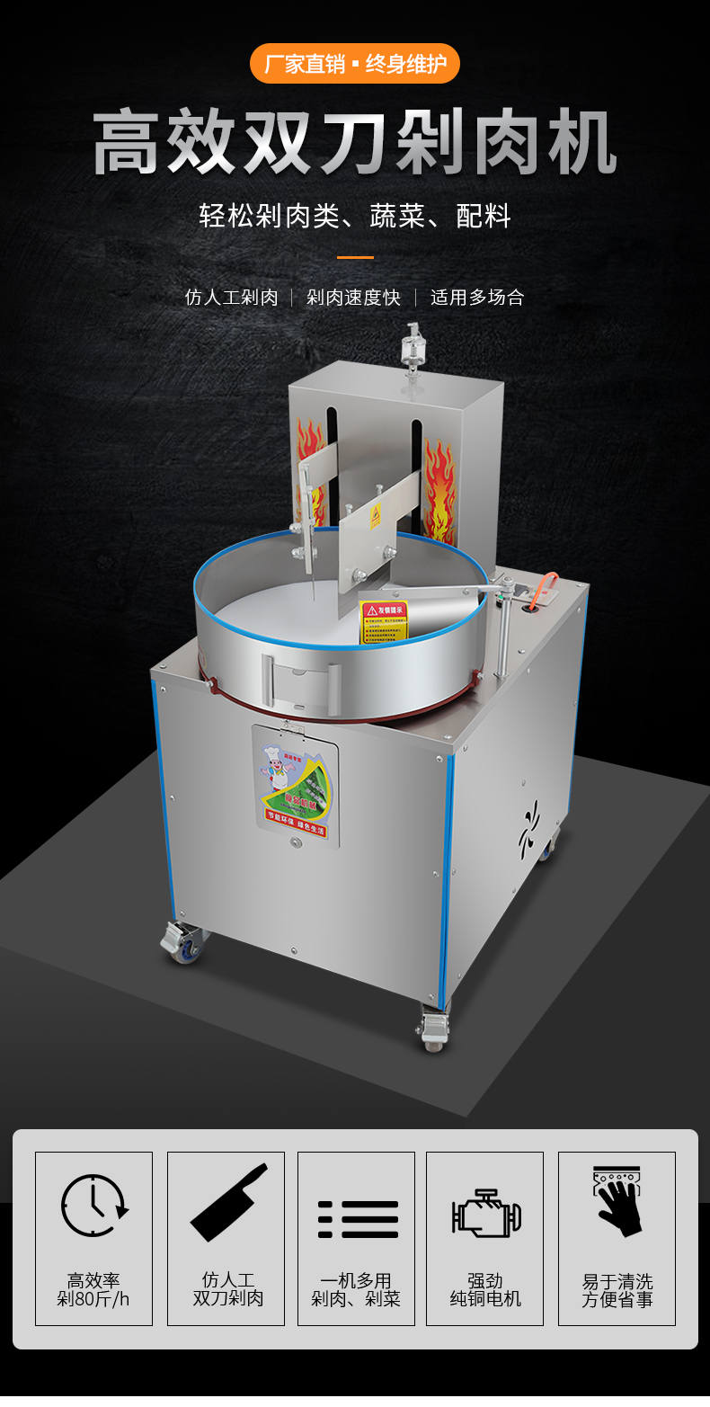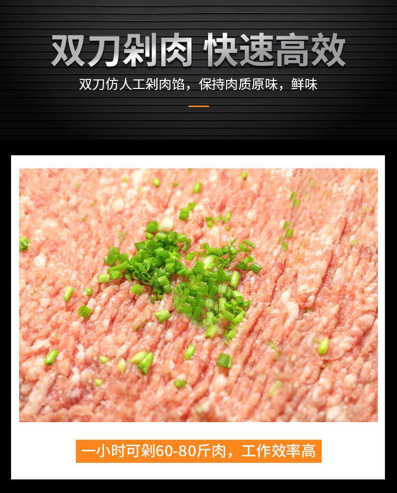 XZ-FL30剁肉機(jī),高效雙萬(wàn)剁肉機(jī),輕松剁肉類(lèi)、蔬菜、配料。仿人工剁肉、剁肉速度快、適用多場(chǎng)合。輕松搞定各種食材旭眾雙刀剁肉機(jī),讓你告別人工,高效剁各種食材。不銹鋼穩(wěn)定機(jī)身加厚不銹鋼板材,堅(jiān)固耐用,不易生銹,延長(zhǎng)使用壽命