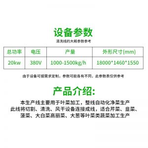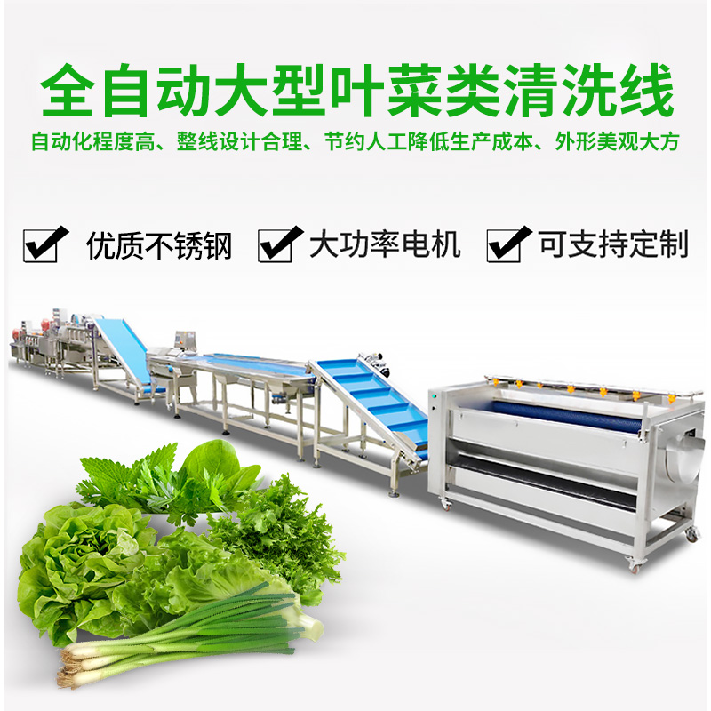 全自動(dòng)大型葉菜清洗線,自動(dòng)化程度高、整線設(shè)計(jì)合理、節(jié)約人工降低生產(chǎn)成本、外形美觀大方。主要用于葉菜加工,整線自動(dòng)化凈菜生產(chǎn)此線將切割、清洗、風(fēng)干設(shè)備連接成線,適合芹菜、韭菜菠菜、大白菜高麗菜、大蔥等葉菜類蔬菜加工生產(chǎn)