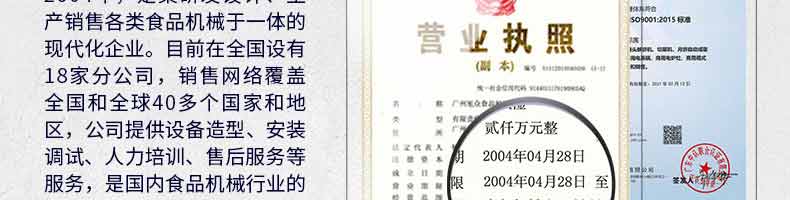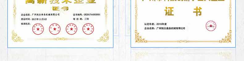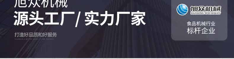 廣州旭眾食品機械有限公司是一家集科研開發(fā),生產(chǎn)設計,營銷服務為一體的現(xiàn)代化生產(chǎn)企業(yè)?,F(xiàn)代化生產(chǎn)車間,精湛制造技術,所產(chǎn)機械歷經(jīng)市場重重考驗,不斷贏得海內(nèi)外客戶的贊譽。
