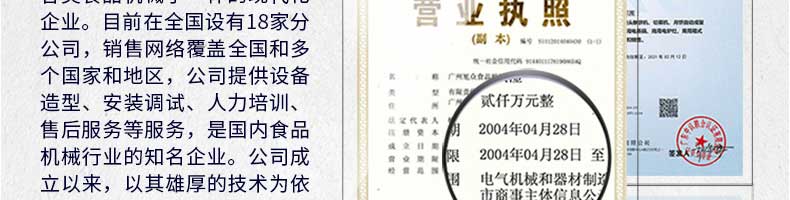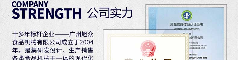廣州旭眾食品機械有限公司是一家集科研開發(fā),生產設計,營銷服務為一體的現代化生產企業(yè)?,F代化生產車間,精湛制造技術,所產機械歷經市場重重考驗,不斷贏得海內外客戶的贊譽。