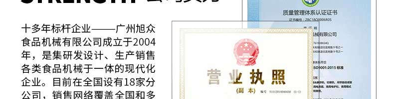 廣州旭眾食品機械有限公司是一家集科研開發(fā),生產(chǎn)設(shè)計,營銷服務(wù)為一體的現(xiàn)代化生產(chǎn)企業(yè)?,F(xiàn)代化生產(chǎn)車間,精湛制造技術(shù),所產(chǎn)機械歷經(jīng)市場重重考驗,不斷贏得海內(nèi)外客戶的贊譽。