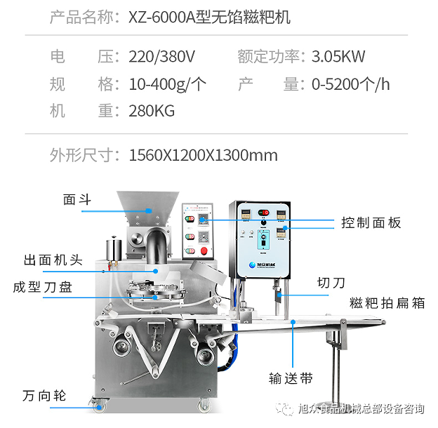 旭眾新款定做糍粑機(jī),是一款生產(chǎn)香甜無餡糍粑的設(shè)備;設(shè)備入料斗容量大,采用雙絞龍送料、變頻無極調(diào)速。產(chǎn)品大小、出皮厚度調(diào)節(jié)自如、使用方便、精確度高,出皮均勻、暢通、產(chǎn)品一次成型,所出產(chǎn)品外形大小統(tǒng)一,遠(yuǎn)比手工制作美觀、便捷。