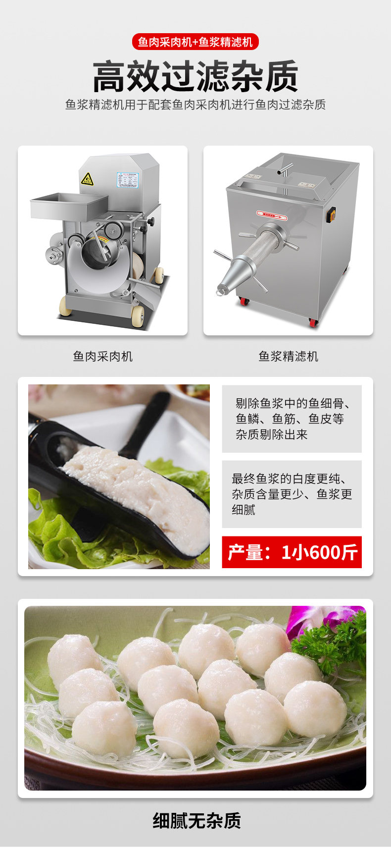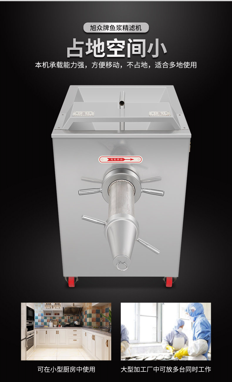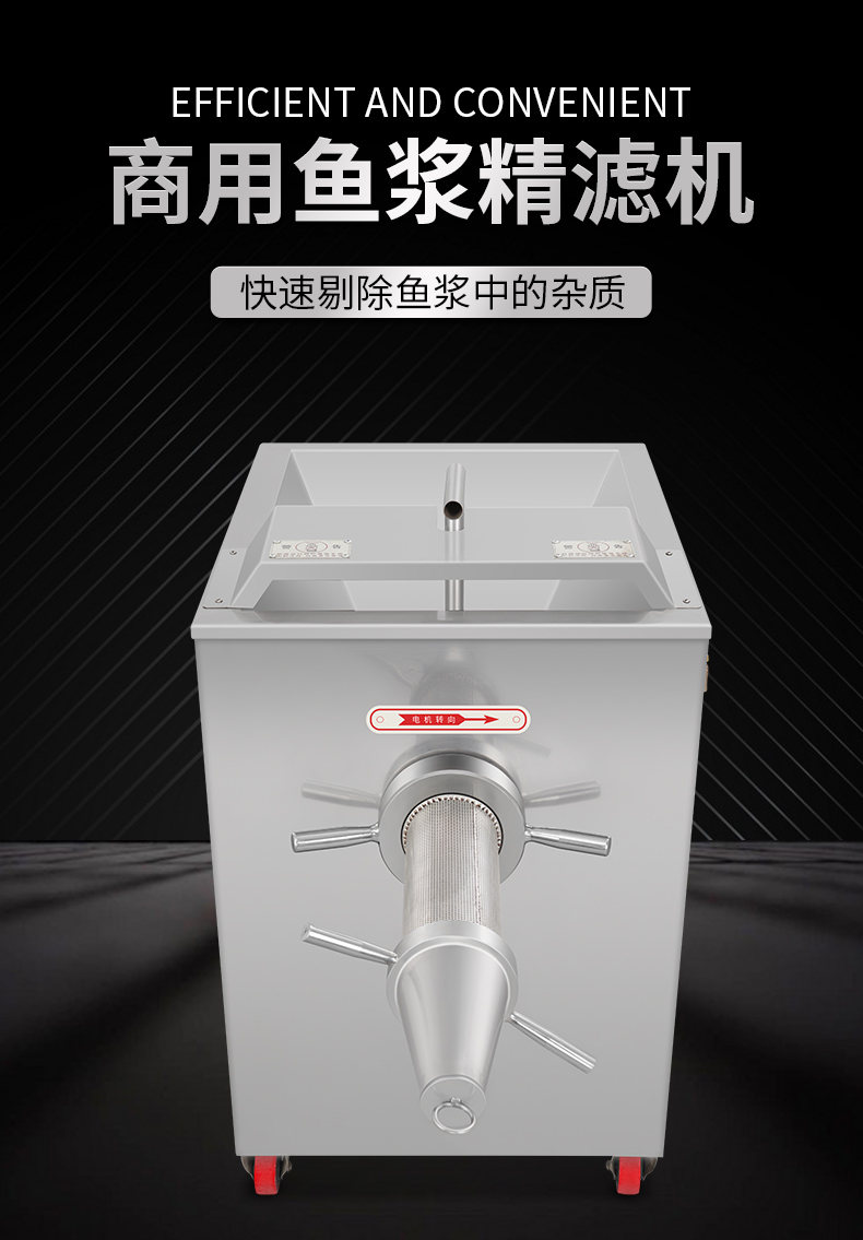 SZJ-300魚漿精濾機,商用創(chuàng)業(yè)魚漿精濾機,用于配套魚肉采肉機進行魚肉過濾雜質(zhì)。節(jié)省人工開支,人工加工魚漿,效率慢剔除魚細骨,不干凈,有了魚漿精濾機,一人就可以很快制作多種魚漿。